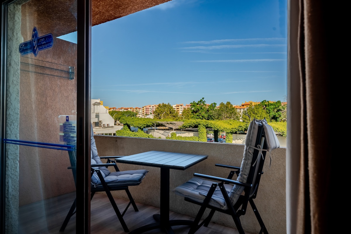 Studio-leilighet; Seng i stuen (dobbel); Baderom; Tekøkken;Fjernsyn; Sikkerhetssafe; Direktetelefon; Terrasse . Tilgjengelige fasiliteter: Lite svømmebasseng med solterrasse (delt), resepsjon døgnet rundt, TV-lounge/bar, lekeområde for barn, minigolf, grill, privat parkering, daglig rengjøring. Wi-fi i fellesområder