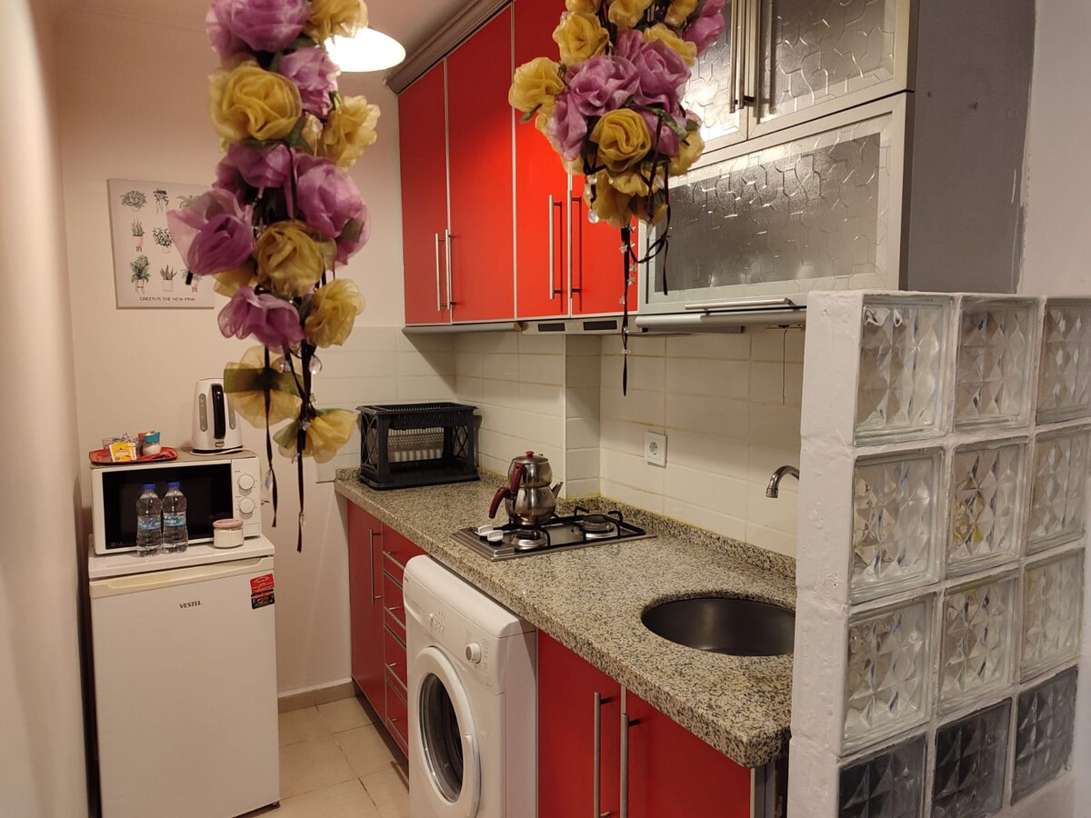 Du kan bo i ro og mak og besøke byen til fots i leilighetene våre i Çanakkale sentrum basar. Røyking ikke i leilighetene våre. Du kan bruke frokostrommet vårt på terrassen vår 24 timer i døgnet og røyke. Du kan drikke te, kaffe, frokost, toast i kafeen vår med utsikt over byen på terrassegulvet vårt. Betalt parkering med overvåkningskameraer er tilgjengelig.