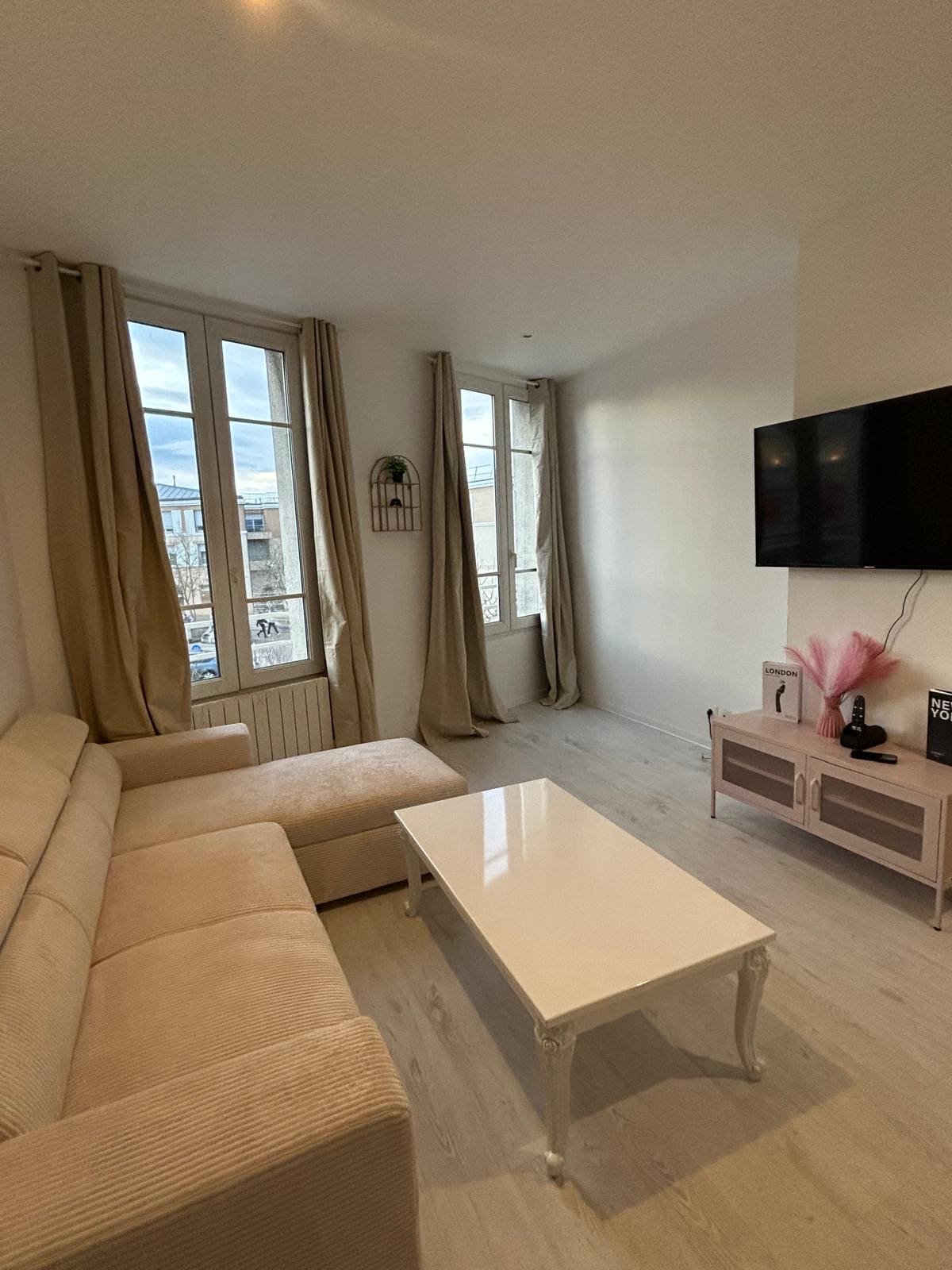 Velkommen til vår sjarmerende helrenoverte leilighet i Dreux, ideelt plassert i nærheten av togstasjonen. Denne leiligheten er perfekt for gjester som leter etter et komfortabelt og praktisk sted å bo for oppholdet i området. Leiligheten vår er utstyrt med et funksjonelt kjøkken med alt du trenger for å tilberede måltidene dine, samt et bad med en dusj. 140 cm seng, lagringsplass på soveromsområdet.