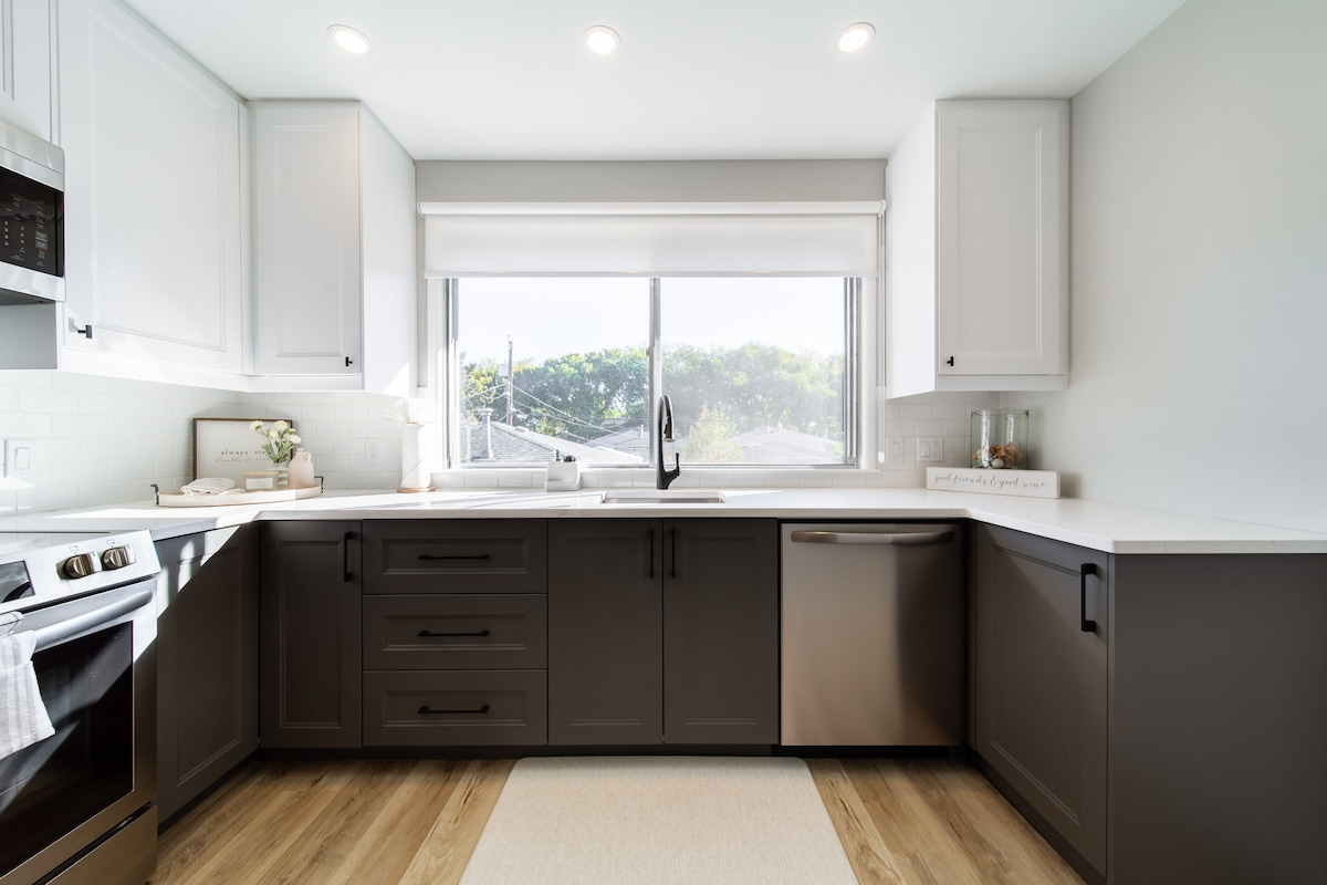 Rustikk/moderne innredning med sjarm. Koselig hovedsoverom med kingsize-seng og smart-TV. To ekstra soverom med queensize-senger. Perfekt for familier! ✧ 1400 kvadratfot. ✧ 8 minutter til sentrumskjernen/ICE-distriktet. ✧ Helt inngjerdet hage med vannfunksjon og boblebad. ✧ Parkering for to + gateparkering. ✧ Smart-TV/kabel-TV. ✧ nøkkelfri inngang ✧ Tim Hortons kaffebunn tilbys.