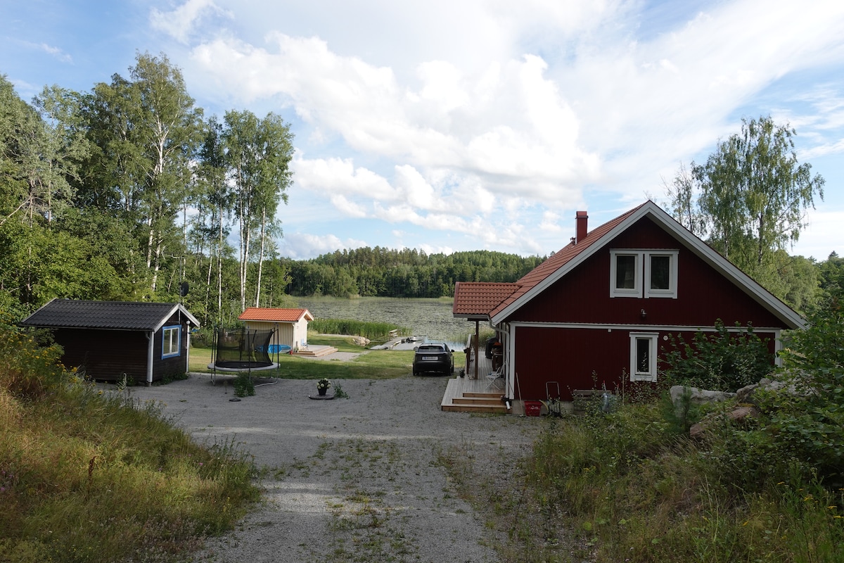 Welcome to our beautiful house in the countryside, with no next-door neighbors except the forest. A short walk takes you to a quiet lake and a lovely sea inlet, for swimming, or just unwinding by the water. The house has all modern comforts, an open floor plan, and big windows that bring the outdoors in. There’s also a private sauna. Especially great for families - there are toys, trampoline, swings, a highchair, and a baby bed to make your stay easy and fun. Enjoy the peace and quiet!
