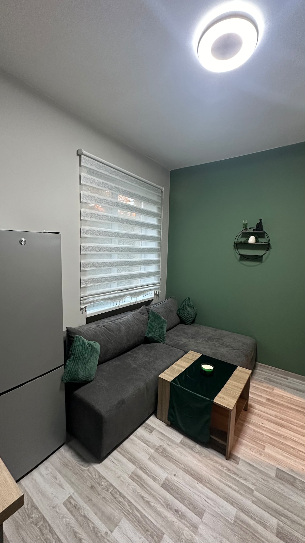 Насладете се на стилно изживяване в това място с централно разположение. Гарсониерата разполага с всичко необходимо за комфортни нощувки. Обзаведена е със спалня и удобен диван, подходящи за пълноценна почивка. На разположение е напълно оборудвана кухня с основни уреди и посуда, както и самостоятелна баня. Пространството е функционално, уютно и създадено така, че гостите да се чувстват удобно както при кратък престой, така и при по-дълга нощувка.