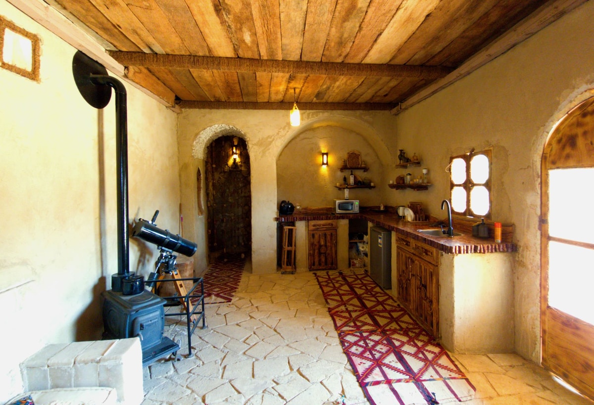 Tradisjonelt beduin-bygd naturhus, på en fungerende gård, daddelfrukthage, et basseng med ferskvannskilde. To senger, stue, komplett bad, kjøkken, terrasse som går rundt. Nyt de naturlige omgivelsene i den svarte ørkenen og den utrolige Melkeveien på nattehimmelen. Skap minner på dette unike og familievennlige stedet. Vi tilbyr all-inclusive måltider og drikke for 25 euro per person per dag. Frisk, organisk beduinmat dyrket, oppdratt og tilberedt tradisjonelt av vårt døgnåpne personale på stedet.