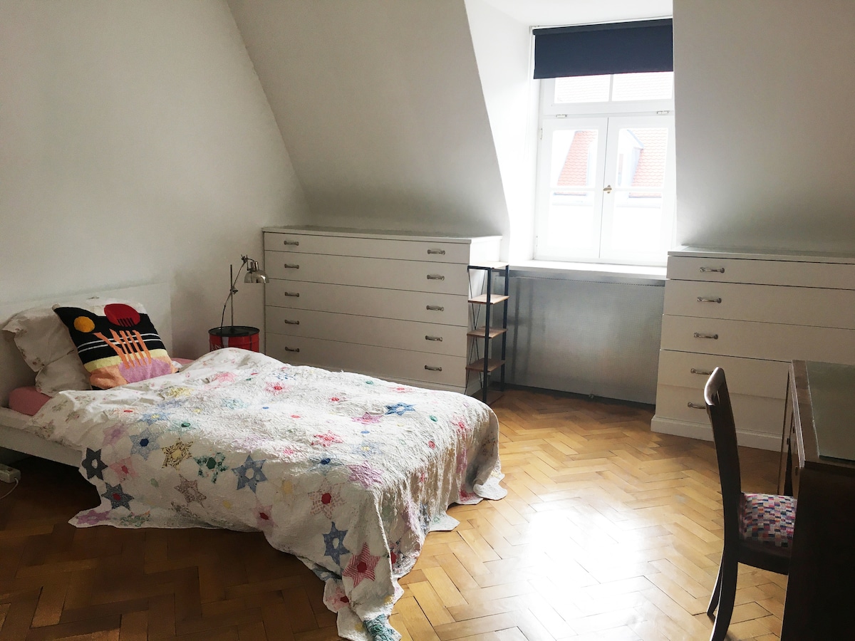 Vi inviterer deg til en sjarmerende, gammel leilighet i hjertet av Schwabing – omgitt av koselige kafeer og utmerkede bakerier. Den stilige innredningen, den imponerende høyden på rommet og den rolige atmosfæren inviterer deg til å slappe av. En skyvedør skiller de to hovedrommene, så det er komfortabelt for opptil fire personer. Herfra er du i gamlebyen eller i den engelske hagen på noen få minutter.