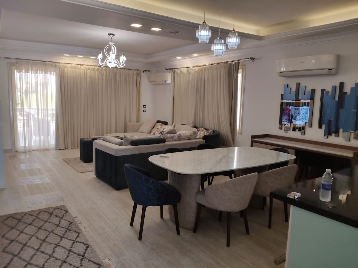 # # # # # # Rent Zamarda Village K # # # # # Første High Sea Row Chalet med en veldig luksuriøs finish. Tre rom med klimaanlegg, inkludert to master 3 bad For en familie på opptil seks personer Minste leie fire dager Kontant nattforsikring ved ankomst og kontanter innløst ved avreise Strømlading etter forbruk Hygiengebyr 500 EGP Hunder og katter er ikke tillatt.
