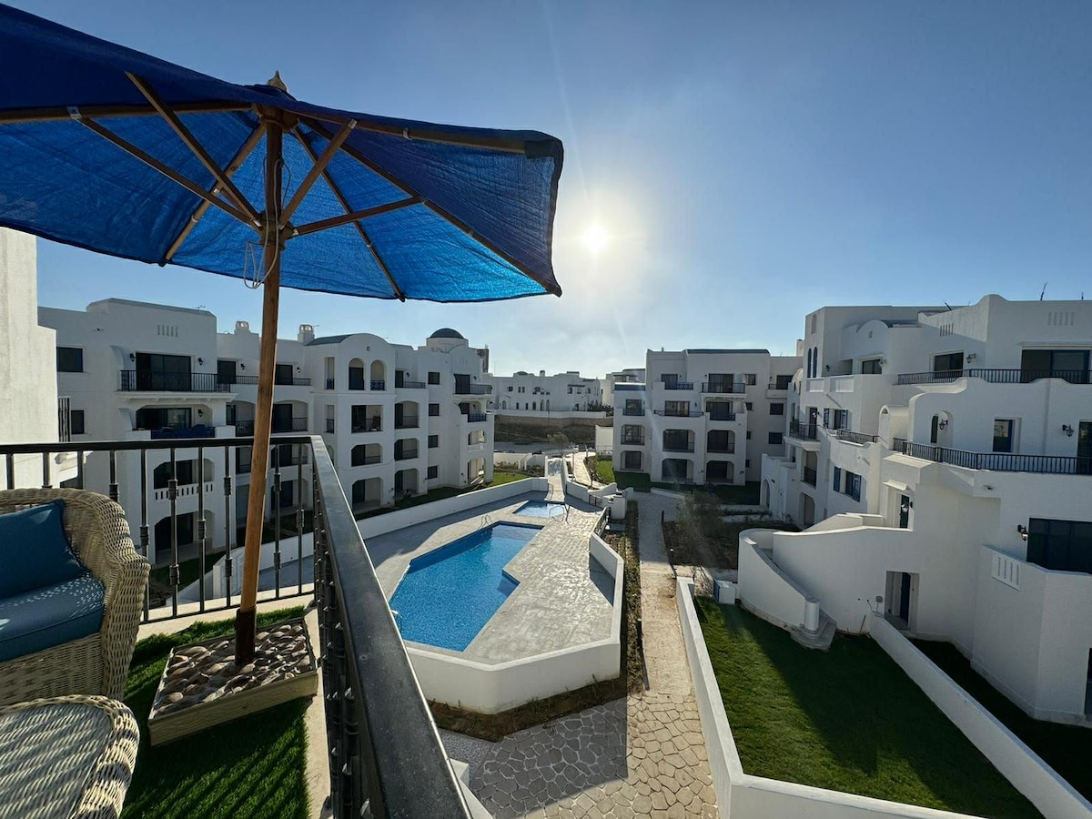 "Våkn opp til fantastisk utsikt over havet og marinaen i denne stilige hytta med to soverom i Marassi. Nyt en privat balkong, marina basseng, raskt trådløst nettverk og alle bekvemmelighetene du trenger for et avslappet opphold. ⚠️ Emaar-tilgangsavgift (EGP 8000) gir deg full tilgang til Marassi gate og North Beach (unntatt helger). Sol & Al Alamein Beach er også tilgjengelig – vi hjelper deg gjerne med å bestille! Vertskapet er StayBee – din bikube for rolige, eksklusive opphold ved havet."