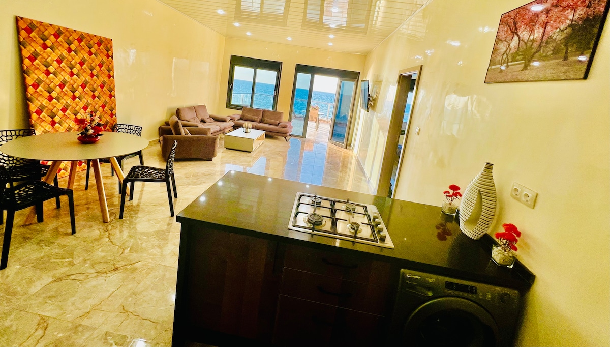 Nyt en vakker bungalow ved sjøen med fantastisk utsikt over havet huset har en stue med 02 store åpninger og et vindu med utsikt over havet, to romslige soverom, to kjøkken (inne og ute), to bad med italienske dusjer (inne og ute), en privat garasje, en utendørs spiseplass + terrasse utenfor med direkte tilgang til stranden I nærheten av flere butikker, restauranter, dagligvarer, kaffebarer og private strender.