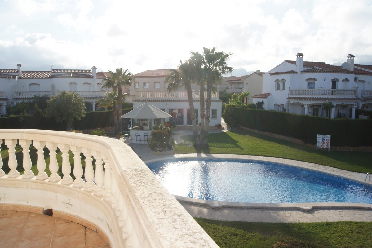 Gratis TRÅDLØST NETTVERK 300 MB. Bonito Chalet ideelle familier, har barneseng og barnestol. Utstyrt kjøkken. 1 dobbeltseng og 1 med 2 senger, sovesofa i stuen. Stort basseng for ti hus, veranda med markise, bord, stoler, to solsenger, grill, sykler, to parasoller, kurv, spader og to strandstoler. Terrasse 100 kvm. Viktig: Fellesskapet tillater bare svømming i bassenget med badedrakt eller bikini. 5 min fra stranden med bil. Sengetøy og håndklær er inkludert. R. Tourístico: HUTT-035145-19