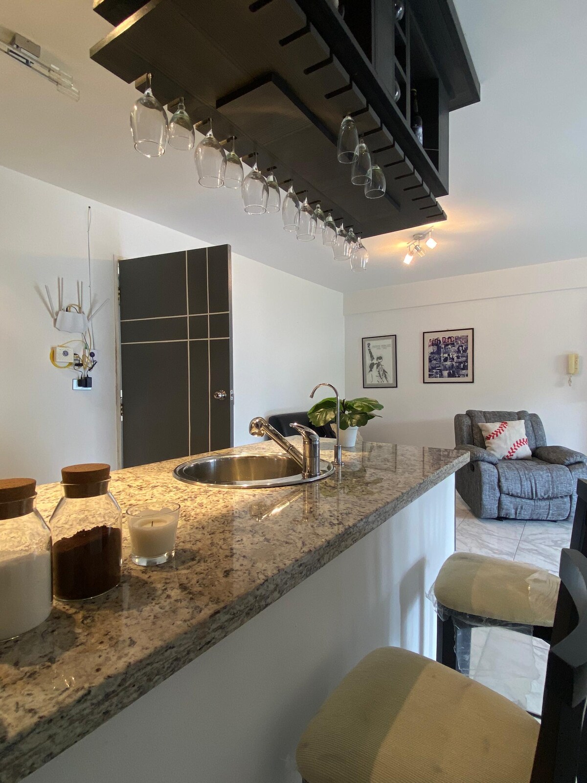 Nyt denne rolige og sentrale overnattingen, veldig god strategisk beliggenhet i nærheten av kjøpesentre, supermarkeder, apotek, klinikker, ved siden av en kirke og 200 meter fra Av Las Delicias. Komfortabel leilighet med egen vannbrønn, varmtvannsbereder, vaskemaskin, tørketrommel, klimaanlegg i alle rom, trådløst nettverk med uavbrutt UPS, smart-TV i stuen og i begge rom med MagisTv, elektrisk komfyr, kjøkkenutstyr. INGEN KRAFTVERK