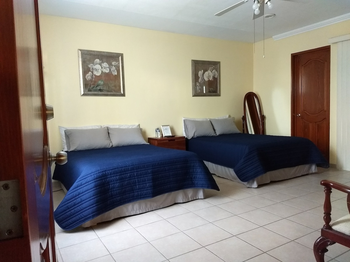 Disfruta de la sencillez, calidez y confort del alojamiento tranquilo y céntrico con estacionamiento techado para un auto. 2 habitaciones en segunda planta, c/u con cama matrimonial, cocineta equipada, wifi, lavadora y TV en sala y en una habitación. A una cuadra de Los Arcos, a 5 min del mirador, 15 min caminando y a 5 min en auto de la Plaza de los Fundadores y del centro de la ciudad, museos, restaurantes y lugares de esparcimiento. Cerca de un centro comercial y una tienda de conveniencia.