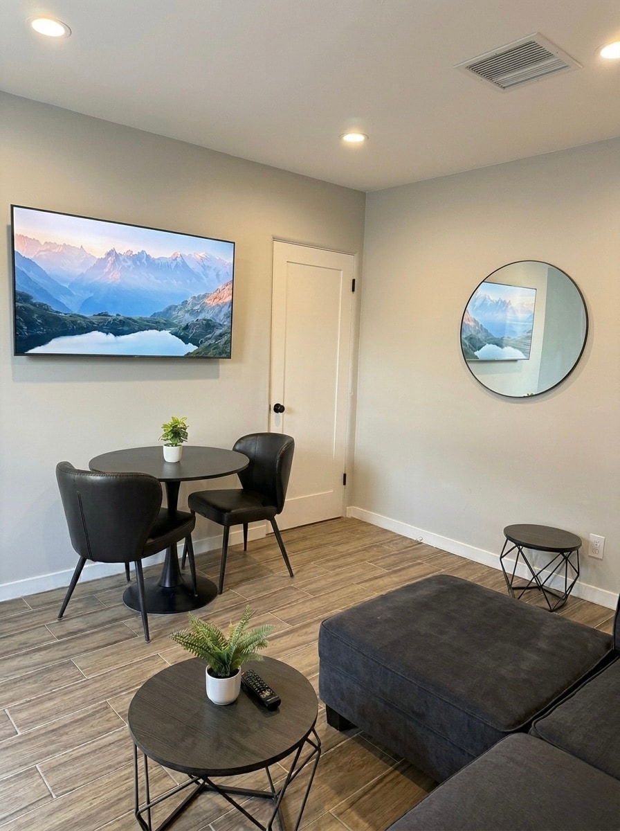 Oppdag et lyst og uavhengig sted på Urban Nest, som ligger i øverste etasje og er tilgjengelig via trapper, med et fullt utstyrt kjøkken, komplett bad, stue, ergonomisk arbeidsplass og to dobbeltsenger. Denne leiligheten er ideell for både korte og lange opphold, og tilbyr privatliv, komfort og moderne finish. Alt bare noen skritt unna det amerikanske konsulatet, med full service og klimaanlegg i alle områder.