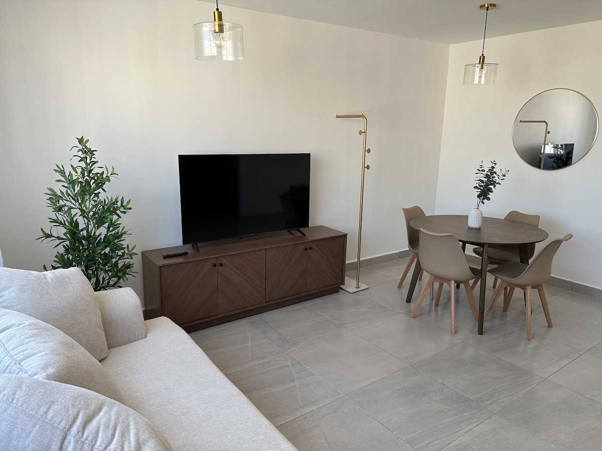 Hyggelig leilighet i første etasje, privat og sikker parkering, døgnåpen overvåking. Omgitt av kommersielle områder, boligområder (Zibatá, Zakia, El Refugio, osv.) og motorveier. Matområder 5 minutter unna, Oxxo, minisuper og apotek 2 minutter unna.Kjøpesentre åtte minutter unna. Walmart, HEB, La Comer, Starbucks, The Home Depot, bensinstasjoner, IMSS 8 minutter unna, flyplassen 25 minutter unna, Plaza Paseo Querétaro 8 minutter unna, transport via app og offentlig transport Rolig og trygt område