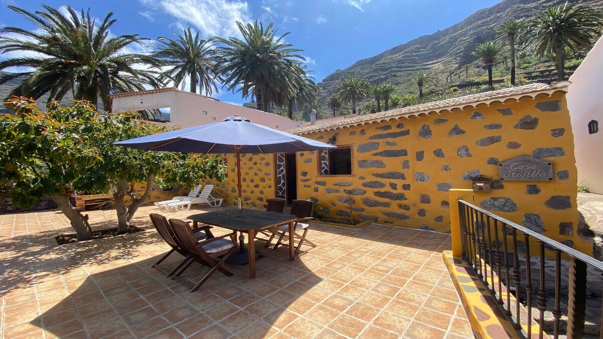 Casita Aurelia ligger i den historiske landsbyen La Calera, Valle Gran Rey. Nyt omfattende havutsikt og en rolig hageterrasse med papaya- og frangipanitrær. Tre vakre strender ligger innenfor 10–15 minutters spasertur forbi banan- og grønnsakshager. Handle på den lokale økologiske gården, eller spis ute på de mange gode restaurantene i Valle. Huset ligger fem minutters gange fra offentlig parkering. Det er godt utstyrt for et fantastisk opphold. Ikke egnet for småbarn, ingen rullstoltilgang.