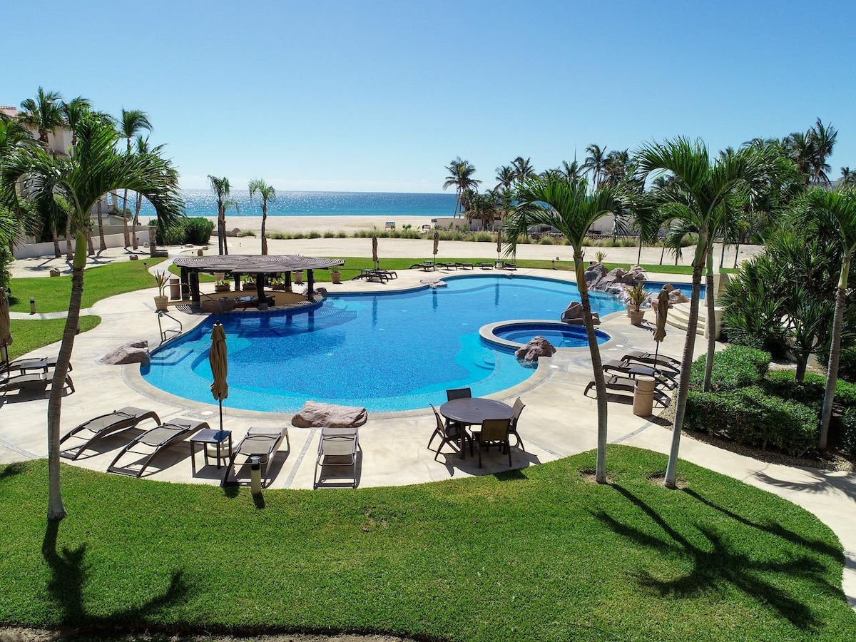 Er du på utkikk etter en avslappende ferie til Cabo? Quinta Pacífica er stedet for deg! Denne to-romsleiligheten ligger i et vakkert, inngjerdet samfunn med bare 16 rekkehus med to fantastiske familievennlige bassenger. Og det beste av alt? Det er bare noen få skritt fra stranden, San José del Cabos hotellgate og sentrum. Nyt å gå i området, slappe av på den romslige terrassen med nydelig utsikt over Vidantas golfbane, eller bare lene deg tilbake og lytte til havet som bryter bølger om natten. Bestill seks netter og få én GRATIS!