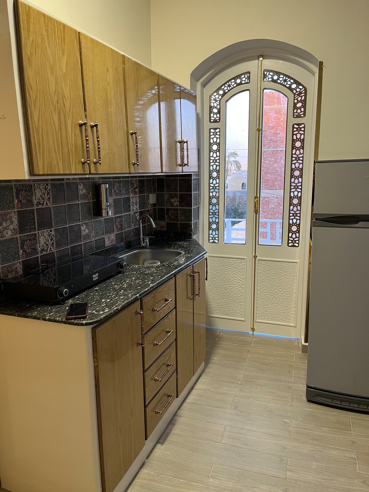 🌿 Et rolig opphold blant lokalbefolkningen mellom plantasjene og fjellet for en autentisk egyptisk livsopplevelse. Boligen ligger ved siden av Hapo-tempelet. 🏠 Leiligheten består av to soverom, hvert med en kingsize-seng for to personer, et kjøkken, et bad og en stue. Hvert rom har klimaanlegg. 🛒 Supermarked to minutters gange, restauranter fem minutter, apotek ti minutters gange. 🍲 Vi tilbyr alle måltider inne i huset (vegetariske og ikke-vegetariske) på forespørsel. 🎈 Vi tilbyr ballongturer, tempelbesøk, en bil med sjåfør, en guide og en turguide for en komfortabel og komplett opplevelse.