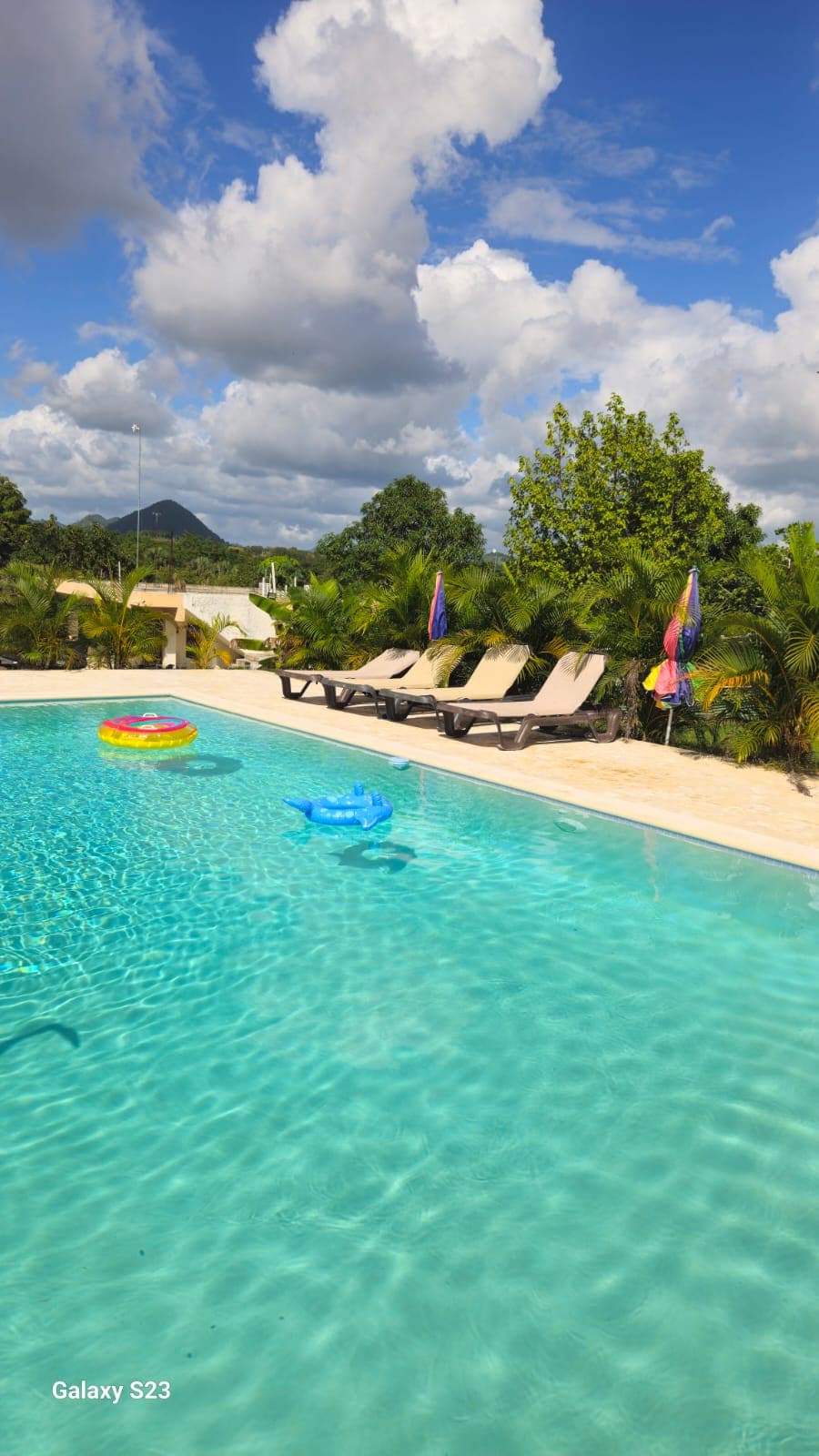 Dra på ferie til dette vakre landstedet som er omgitt av natur. Det har seks komfortable rom, et svømmebasseng og et piknikområde hvor du kan slappe av og kose deg med familie eller venner. Det perfekte stedet for å koble av, slappe av og skape uforglemmelige minner. Tre minutter fra Coral Highway. Ti minutter fra Higüey. 25/30 minutter fra Punta Cana og La Romana. 20/25 minutter fra Bayahibe/ Yuma. Dette er en anslått tid – den avhenger alltid av sjåføren og veiforholdene.