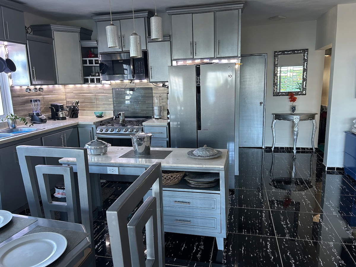 Nyt et komfortabelt opphold i denne private villaen med fire soverom og fire bad, som har plass til opptil 14 personer og er ideell for familier og store grupper. Hjemmet har romslige stuer, et privat basseng og en komplett reservegenerator for ekstra komfort. Denne villaen ligger i et rolig område i nærheten av Higüey og tilbyr privatliv, plass og bekvemmelighet – perfekt for korte eller lengre opphold. Godkjente sammenkomster er tillatt med forhåndstillatelse. Ytterligere gebyrer påløper. Ta kontakt med oss før du bestiller hvis du planlegger en feiring.