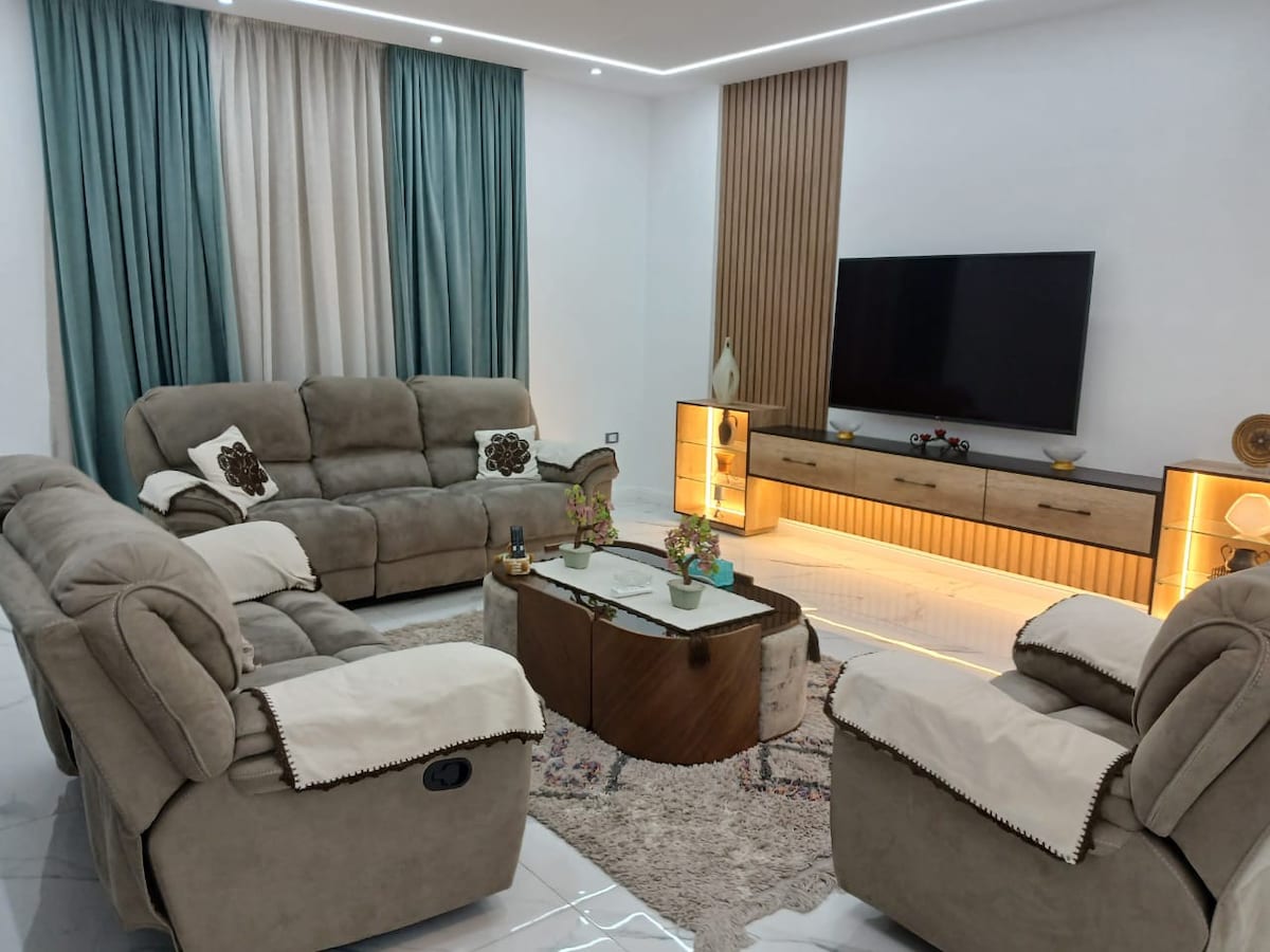 Fantastisk villa med fire soverom og romslig hage i Madinaty Unn deg luksus og komfort i den vakre villaen vår. Villaen har en bred, privat hage – perfekt for å nyte måltider utendørs, leke eller bare slappe av. Plassert i et rolig nabolag. Det er et ideelt sted for dem som ønsker å oppleve ro, men som fortsatt vil være i nærheten av de beste attraksjonene i Kairo. Enten du er på forretningsreise, ferie eller familieferie, tilbyr villaen vår alt du trenger for et minneverdig opphold.