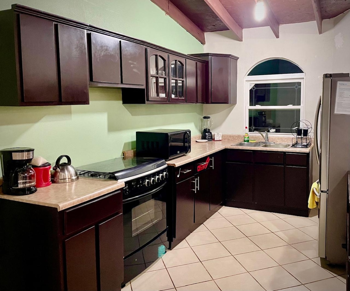 Un lugar comodo y limpio, con aire acondicionado, seguro, boiler, estacionamiento compartido dentro de la propiedad con cerco con puertas con candado, ideal para descansar si estas de paso o de vacaciones, cercano a la carretera principal, con una cocina media, sin estufa; pero si te quedaras varios días, podemos proveerte 1 parrilla de gas con 1 tanquesito (tu compras el resto) debes pedirla, puedes acampar en el patio también si traes casita de camping y asar y hacer fogata afuera.