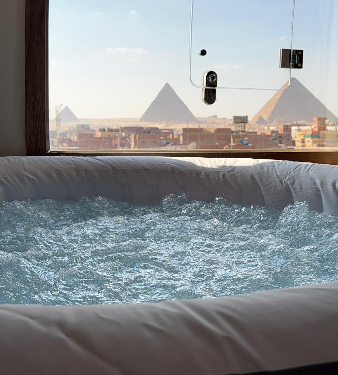 Et rom med utsikt over pyramidene