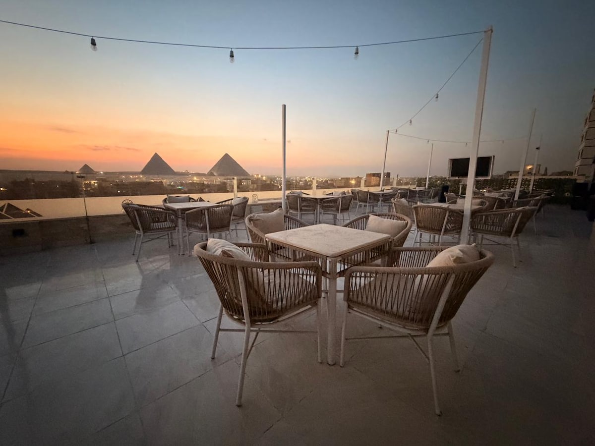 Welcome to our hotel, where comfort meets unforgettable views. Located just minutes from the Giza Pyramids, our property offers a unique rooftop experience with breathtaking panoramic views of the Great Pyramids — a sight you can enjoy day and night. - Breakfast is free for all guests - We offer private tours to all Egypt's popular sights - We offer private shuttle pick-up services from the Airport to the hotel