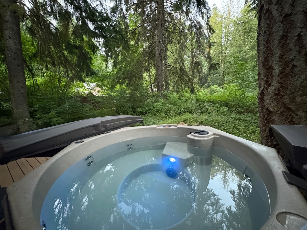 Skogshytte ved Mt. Rainier, boblebad, badstue, DNR-sti