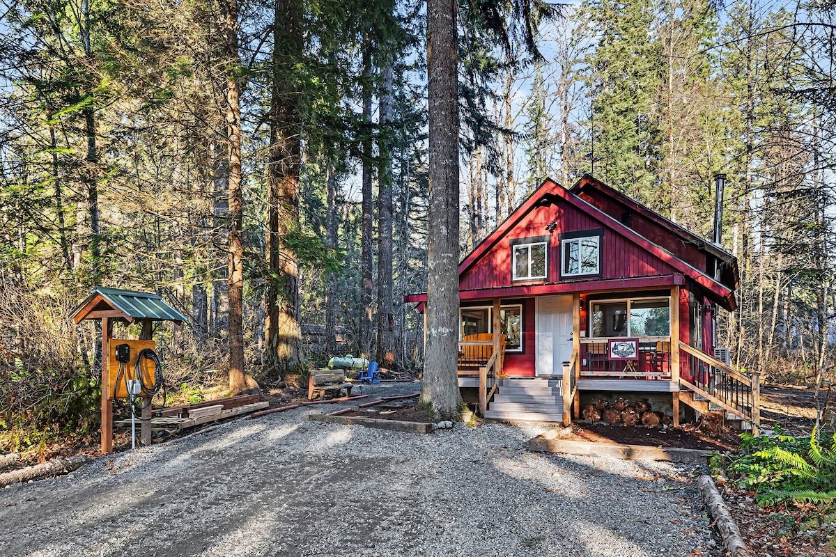 Lad batteriene på dette unike og rolige overnattingsstedet. Denne rustikke og koselige ferieboligen med to soverom og ett bad er alt du trenger for en avslappende ferie med deg selv og dine nærmeste (pelskledde venner inkludert). Om dagen kan du utforske fantastiske turer i Mt. Rainier nasjonalpark, og når kvelden kommer, kan du gi de ømme bena et foryngende bad i hytta sitt private boblebad. Denne bedårende hytta ligger på et sted som gjør det mulig å gå til spisesteder og bare noen skritt til sentrum av Ashford og Nisqually-elven.