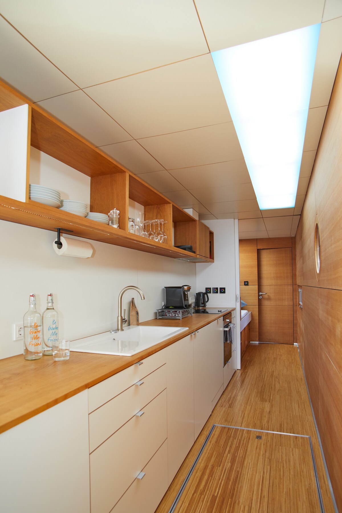 Unsere „JULIA“ ist ein exklusives, schwimmendes Zweizimmerapartment auf dem Wasser mit allem was dazugehört. Der Kaminofen als Highlight und die Fußbodenheizung sorgen für behagliche Wärme auch an kalten Tagen. Die „JULIA“ kann für bis zu 2 Personen + 2 Aufbettungen im Salon gebucht werden. Das Hausboot liegt fest im Heimathafen der Citymarina Berlin Rummelsburg und ist nur 7 Kilometer vom Alexanderplatz entfernt. Sie benötigen keinen Bootsschein, das das Hausboot nicht bewegt werden kann.