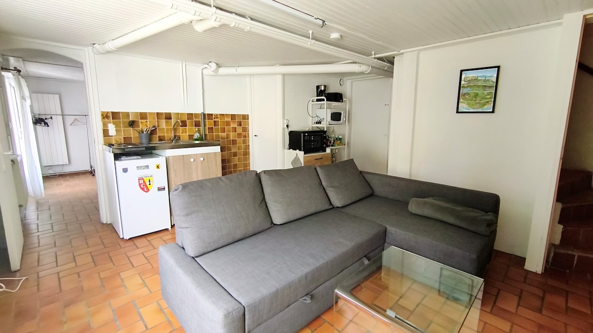 Renovert studio 2 personer TV kjøkken bad dusj wc laken håndklær og basisprodukter levert uten overfor grønn ramme terrasse og avslapningsrom til din disposisjon restaurant, kino Pathe, svømmebasseng og butikker 5 min gange. Louvre-museet Bollaert stadion 5 min nær offentlig transport ligger 20 min fra Arras 30 min fra Lille motorvei A1, A21 og A26 i nærheten. Vandre på slagghaugene og bakken av Artois Vimy, Notre Dame de Lorette. Ikke tilpasset for PMR.
