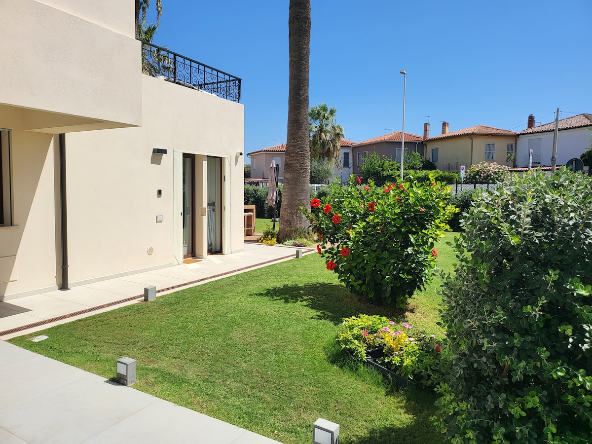 MERK: HVIS KALENDEREN ER FULLT BESTILT, ER DET EN ANNEN ANDRE LEILIGHET VED STRANDEN TILGJENGELIG, VED SIDEN AV DENNE, I SAMME HUS OG I SAMME ETASJE (for mer informasjon, kontakt meg).I Geremeas Mare-residensen, i nærheten av den praktfulle stranden i Geremeas, mellom Cagliari og Villasimius, og ca. 35 km fra flyplassen i Cagliari, består komplekset av treetasjes bygninger og flere mindre enheter fordelt i den tykke middelhavsvegetasjonen: semi-uavhengig leilighet i første etasje med en hage på ca. 1000 kvadratmeter bestående av en inngang, stue med peis og dobbel sovesofa, fullt utstyrt kjøkkenkrok, dobbelt soverom, et bad med badekar, en veranda med havutsikt hvor du også kan spise utendørs og nyte en virkelig sensasjonell ro og utsikt. Leiligheten er utstyrt med aircondition (varme/kjølesystem), utstyrt med all komfort (to TV-er med DVD-spiller, stereo, to airconditioner, kjøleskap med fryser, mikrobølgeovn, brødrister, blender, strykejern med strykebrett, hårføner, stoler, dekkstoler og strandparasoller, liten grill, vaskemaskin) og ER BARE FEM METER FRA DEN VAKRE STRANDEN I GEREMEAS, inne i et komplekst med tilgang kun for beboere. Bukten Geremeas, 3 km lang, er definitivt en av de vakreste på kysten. Det krystallklare havet når umiddelbart en viss dybde, og sanden er hvit og litt stor. Definitivt sanddynene som skiller seg ut bak stranden. Leiligheten er tilgjengelig umiddelbart.Vær oppmerksom på at det er en annen leilighet tilgjengelig ved siden av denne som du ser på bildene (i samme hus). Den har samme størrelse og samme pris som denne, den ligger også foran Geremeas-stranden med en spektakulær utsikt over havet.