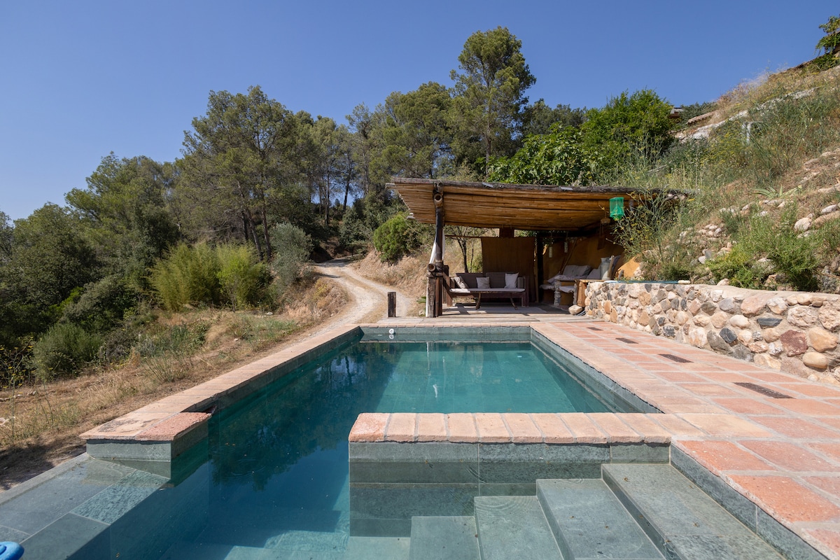 Lisens HUTCC-060135 Miljøvennlig hus i amerikansk stil for fem personer omgitt av natur med utsikt over Montserrat Nyt en privat hage med en pergola-grill trampoline og huske som er perfekt for avslapning eller utendørs lek. Fullt utstyrt kjøkken, stue med vedovn, klimaanlegg og trådløst nettverk. Kun 30 minutter fra Barcelona og fine strender i Sitges og 1 time fra Port Aventura. Privat parkering og lokale anbefalinger for å få mest mulig ut av oppholdet ditt Et bærekraftig tilfluktssted å koble av og nyte