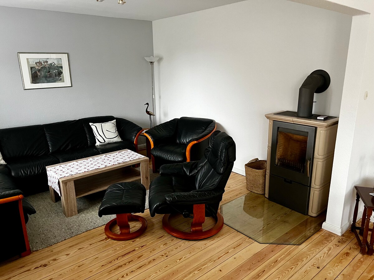 Design møter idyll ved Nordsjøen: nordisk ro, stil og havutsikt når du står opp. Velkommen til Heverstrom-huset! Ideell for å oppdage Halligen, øyer og naturparadis – møbler av høy kvalitet og med plass til fire personer (to soverom). På bare fem minutter med bil kan du nå den søte havnebyen Husum. Et perfekt tilfluktssted for å slappe av og utforske Nordsjøkysten. Inkluderer ladestasjon.