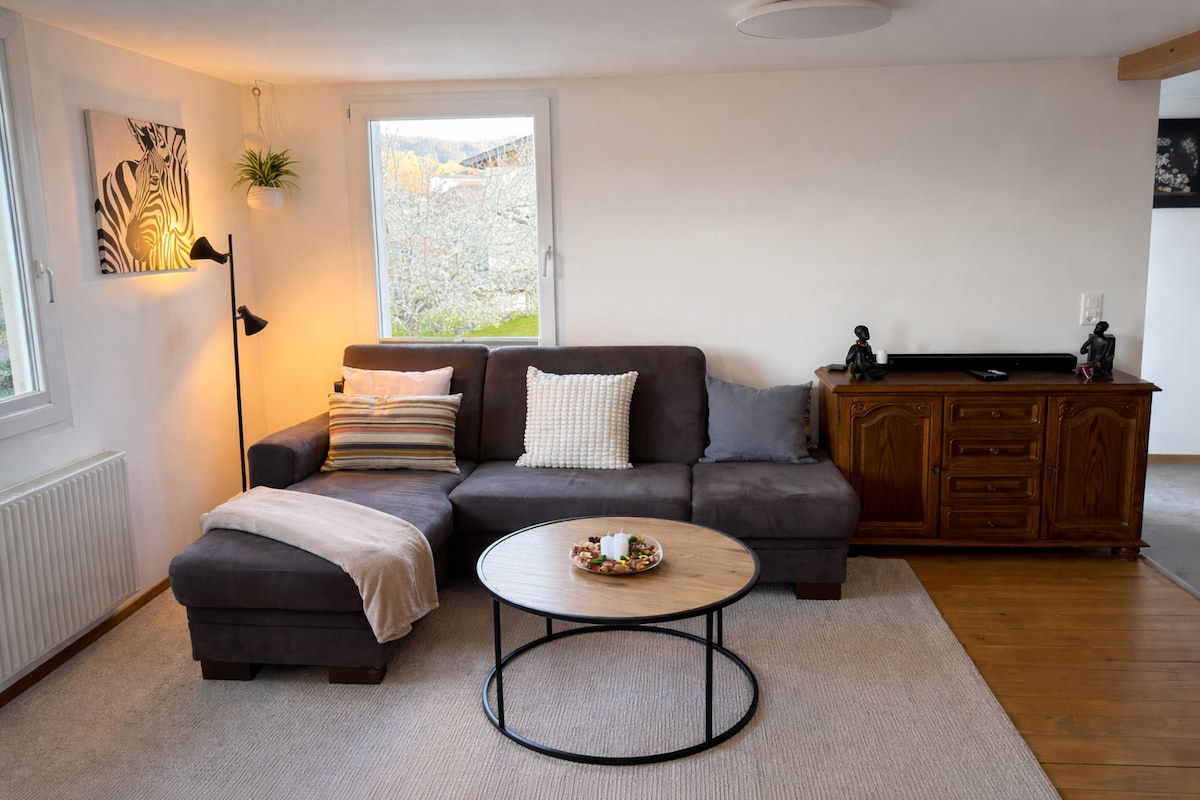 Stille, romslig og stilig leilighet midt i Emmental på 1140 meter over havet av tåke. Perfekt for å koble fra travel dag til dag, fottur, sykle, nyte naturen eller gå på utflukter til Bern, Thun, Luzern eller til den vakre, naturlige finishen Emmental. Eller bare for å la dagen være en dag og nyte den betagende utsikten.