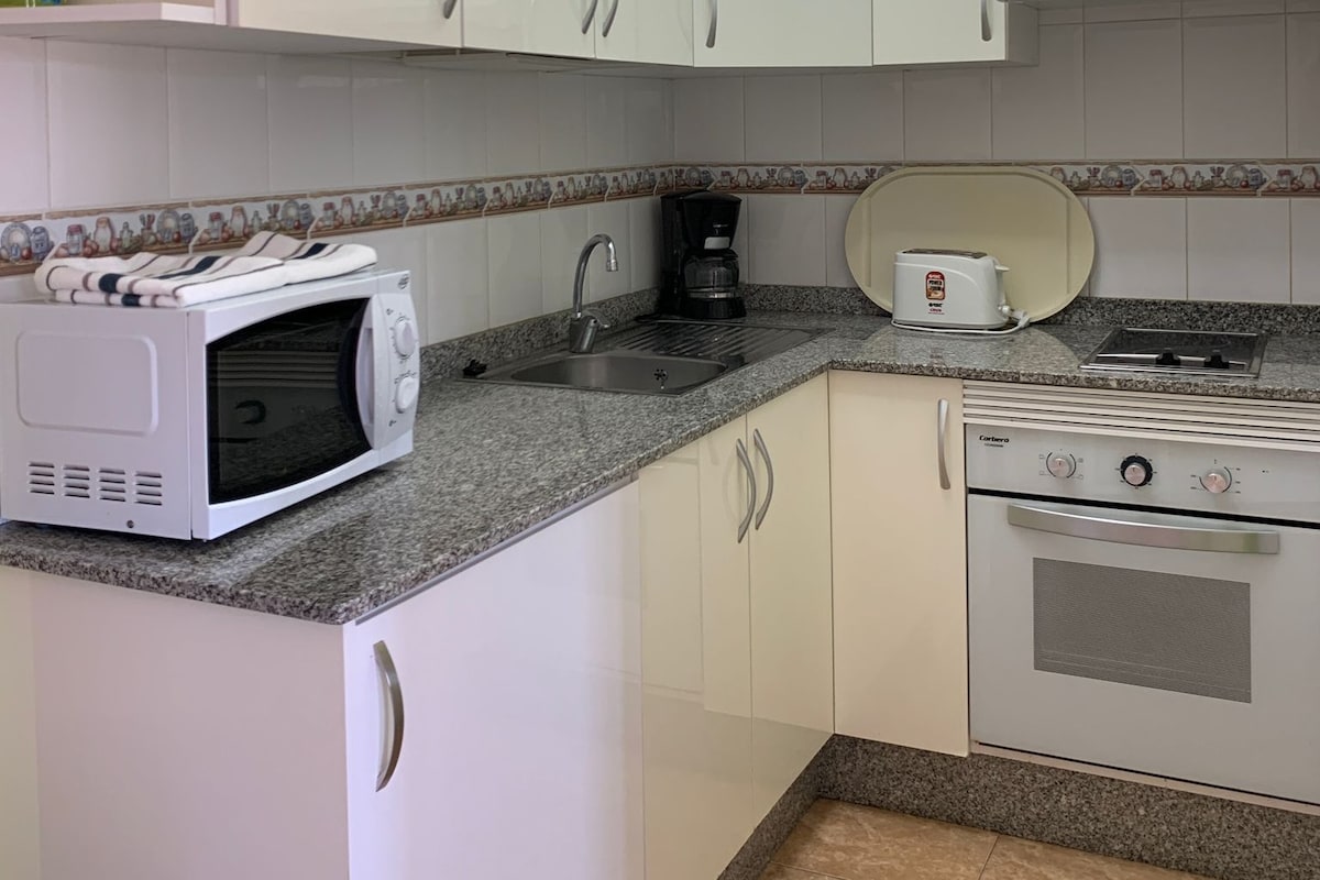 En kort spasertur fra stranden, renovert leilighet, lys og fullt utstyrt. Med god orientering er det romslig, kjølig og komfortabelt for langvarige opphold. Den har en terrasse med utsikt over bassenget, to 1 x 2 m hotellsenger, en sovesofa, et kjøkken med stekeovn og mikrobølgeovn, trådløst nettverk og to smart-TV-er. Kompleks med basseng, hage og parkering, nær kjøpesentrene Kasbah, Yumbo og Águila Roja, supermarkeder og gode buss- og drosjeforbindelser. Ideell for turer ved havet, svømming, soling og utforsking av øya.