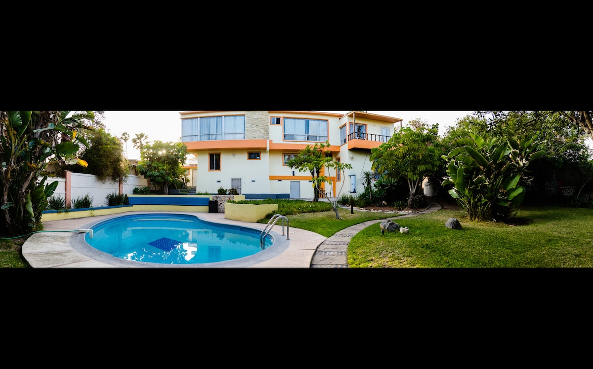 Vakkert hjem i Ensenada ved stranden. Dette nydelige hjemmet ligger i et rolig og privat inngjerdet område: Fracc. Rincon del Mar. Dette hjemmet har seks soverom, hvert med eget bad og to stuer, og et basseng for å holde deg avkjølt! Innen ti minutters gange fra stranden (fem minutters kjøretur), slik at du kan nyte en morgentur eller ta en spasertur i solnedgangen. Macroplaza kjøpesenter innen fem minutter, sentrum innen ti minutter, Valle de Guadalupe og La Bufadora innen 45 minutter.