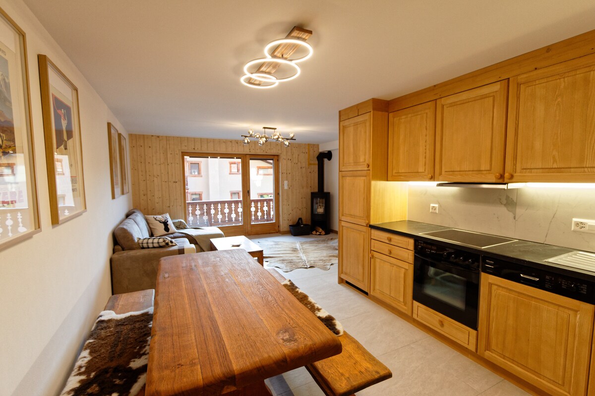 Denne leiligheten på 60 kvm / 640 kvm ligger i sentrum av Verbier, bare to minutters gange fra hovedskiheisen Medran. Den har to soverom og en stor stue med åpent kjøkken. SOVEROM OG BAD • soverom 1: kingsize-seng, eget bad med regndusj/badekar, tilgang til balkong • Soverom 2: køyesenger, med 140 x 200 og en 90 x 200 seng. • Stue: sovesofa med dobbeltseng (140 x 200). Ekstra bad med regndusj FUNKSJONER UTE • stor balkong • Innendørsparkering