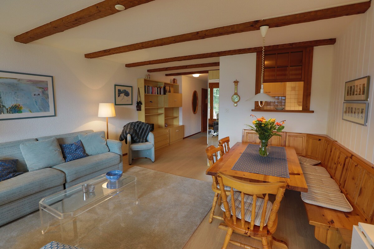Solrik leilighet med åpen utsikt (syv minutters gange til gondolen).