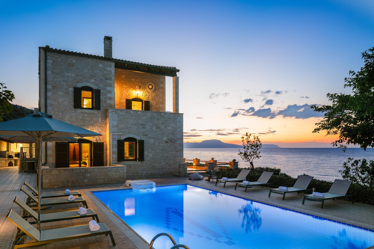 En elegant og koselig steinvilla ved stranden med unik utsikt over havet ligger perfekt til i Petres, bare 15 minutter med bil fra byen Rethymnon og 35 minutter med bil fra byen Chania. Boligen passer perfekt for par eller en familie. Det fullt utstyrte kjøkkenet, det luksuriøse badet, den moderne stuen og den fantastiske utsikten vil oppfylle dine høye forventninger.