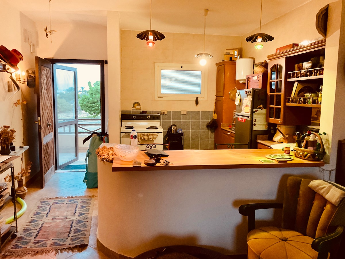 En 350 kvm privat hage, tre soverom, to bad, fullt klimaanlegg, fullt møblert, fullt utstyrt, åpent kjøkken, høyt privatliv 5 minutter til stranden med bil og direkte til det store svømmebassenget, bare 1,5 time fra flyplassen i Kairo. Avslappende sted, natur, restaurant, marinabotter og jetski.