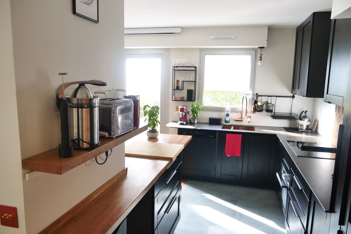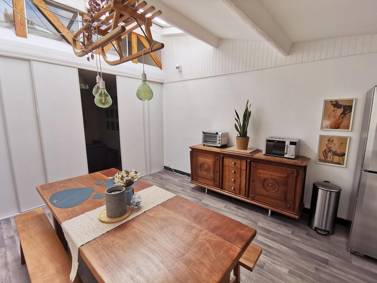 Velkommen til «Jardin Secret», en femstjerners★ havn (vurdert av Atout France, reiselivsdepartementet) i hjertet av Nantes. Denne lyse leiligheten på 85 m² har to soverom, førsteklasses sengetøy, en koselig mesanin, et fullt utstyrt kjøkken og en 80 m² privat hage med skyggefull terrasse. Eksponert steinverk, høyttalere, raskt trådløst nettverk og sikker parkering er inkludert. Bare en steinkast unna de beste severdighetene og butikkene i Nantes. Ekstra tilgjengelig: sen ankomst/avreise, ulike pakker. Perfekt for et komfortabelt, autentisk opphold. Bestill nå!