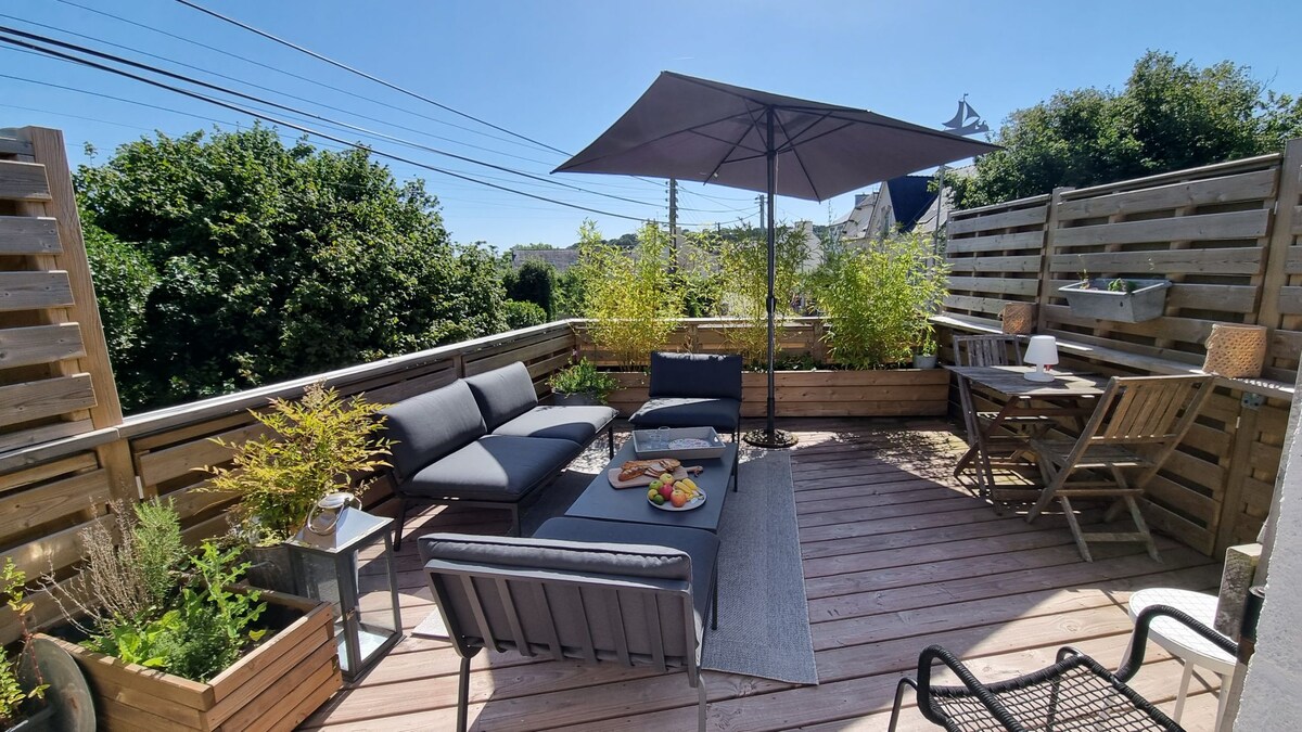 Leiligheten "Le Confluent" ligger i sentrum av Quimper i tredje og øverste etasje i en bygning med heis. Meget rolig, lyst, funksjonelt og komfortabelt, lar den deg slappe av eller jobbe i fred. Den ligger i nærheten av alle fasiliteter (markedshallen ligger 2 minutters gange unna, bussholdeplass ved foten av bygningen). Togstasjonen ligger 15 minutters gange fra leiligheten.
