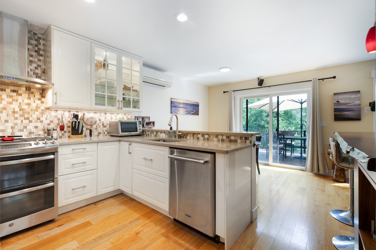 Renovert med godt lys, hvelvet tak, ny terrasse og modne trær. En ti minutters spasertur ved en vakker innsjø med fugletitting og utsikt fører deg til det hundevennlige Avery Restaurant Brewery. Røyking og fester er ikke tillatt. Unge familier i nærheten. Hunder er velkomne, men strenge regler gjelder. Les dem nøye før du bestiller. En medvert bor i den selvstendige, lydisolerte kjelleren som nås med en egen inngang gjennom garasjen. Dette er hjemmet mitt to tredjedeler av året.
