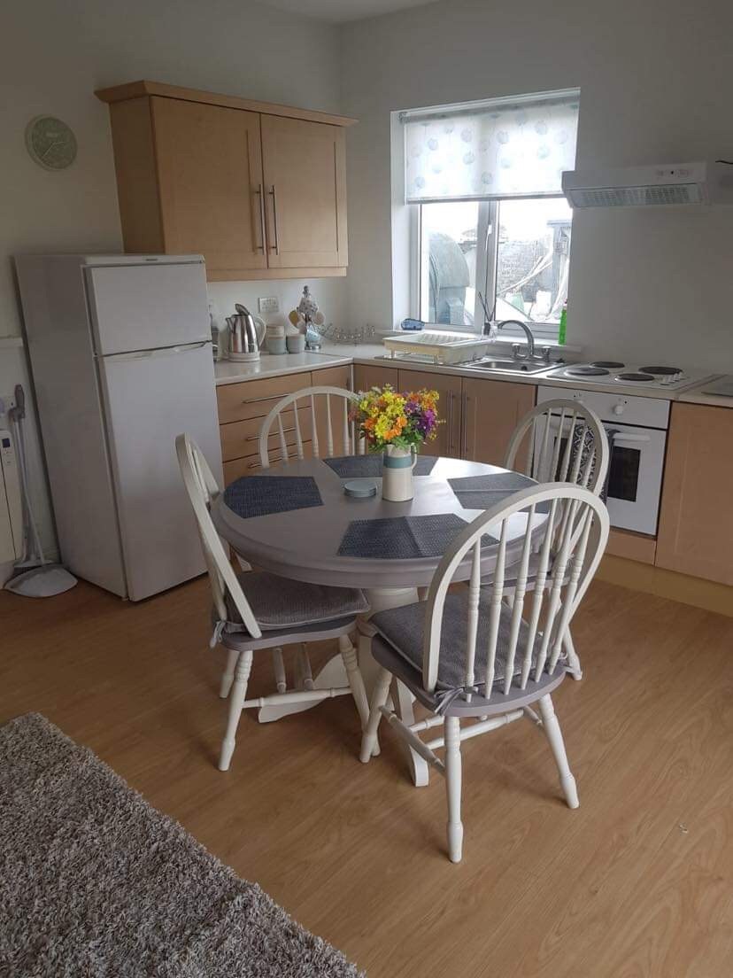 Denne leiligheten med ett soverom og terrasse er perfekt for å besøke The Cliffs of Moher, og tilbyr et fullt utstyrt kjøkken, gratis trådløst nettverk, sengetøy i bomull, håndklær, toalettartikler og grunnleggende utstyr til matlaging. Plassert på baksiden av min gamle hytte, med god privatliv, med utsikt over grønnsakshagen og epletrærne. Ideell for en spasertur langs kysten til klippene, ferge til Aran-øyene, Doolin med sin blanding av tradisjonelle musikkpuber og fine spisesteder. Lahinch-stranden og golfklubben. Burren nasjonalpark ligger 30 minutter unna.