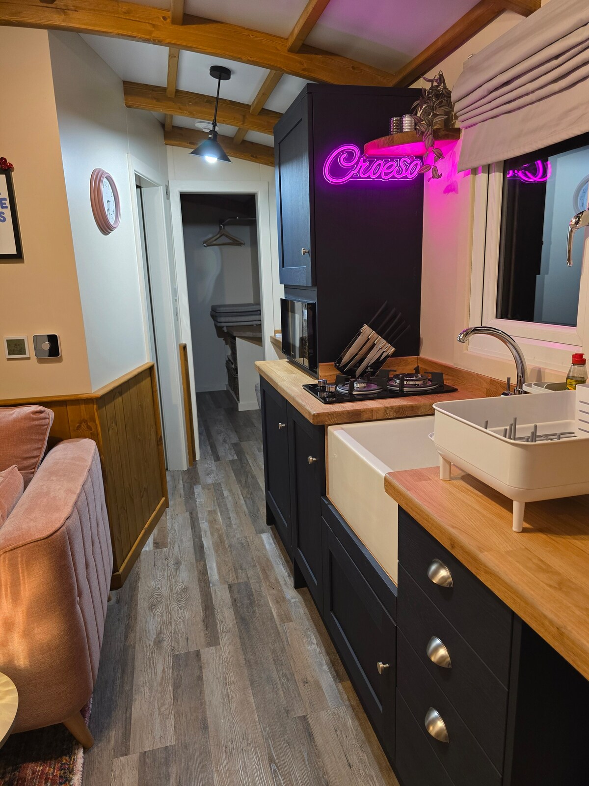Luksuriøs gjeterhytte med varmekabler, vedfyring, kingsize-seng, eget dusjrom og uavbrutt utsikt over Snowdonia og havet. Boligen ligger på sin egen åker, og er en del av åtte hektar med vakkert vedlikeholdt privat grunn med frittgående kylling og ender, griser, røde ekorn og tårnugler. Det er et virkelig rolig tilfluktssted, men det er også perfekt plassert for dem som ønsker å utforske øya Anglesey, og Snowdonia nasjonalpark ligger kun 25 minutter unna med bil.