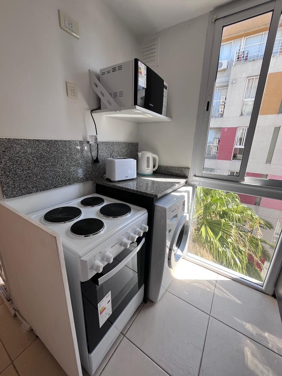 Møblert Monoambiente leilighet utstyrt med servise og redskaper, kjøleskap med fryser, kjøkkenkrok og individuelt klimaanlegg. Passert for 2 personer ( med under 3 personer som deler seng med voksne)