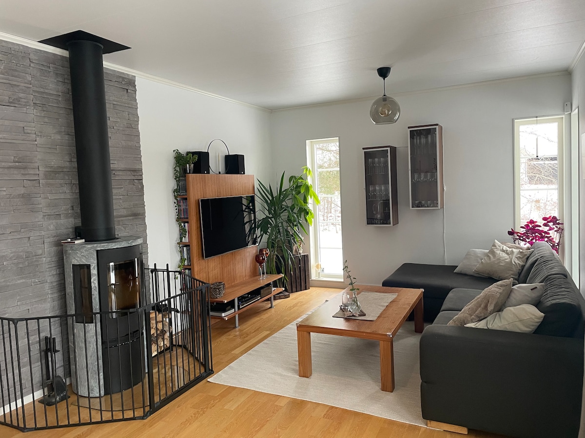 Fint hus med stor stue og kjøkken med åpen ild, bad og fire soverom. Perfekt både om sommeren og vinteren. Det er ekstra madrasser samt et gjestehus og badstuhus med ekstra dusj og toalett. Fiber er tilgjengelig som gjør at det også passer for å jobbe herfra. I nærheten av naturtomt med gressplen for sommeraktiviteter. Ca. 150 meter til bryggen, båt (3,5 hk) for fiske og svømming og kajakk for to personer. Nydelig løpebane på 4,5 km rundt Björsund. Stor terrasse med grill og pingpong-bord.
