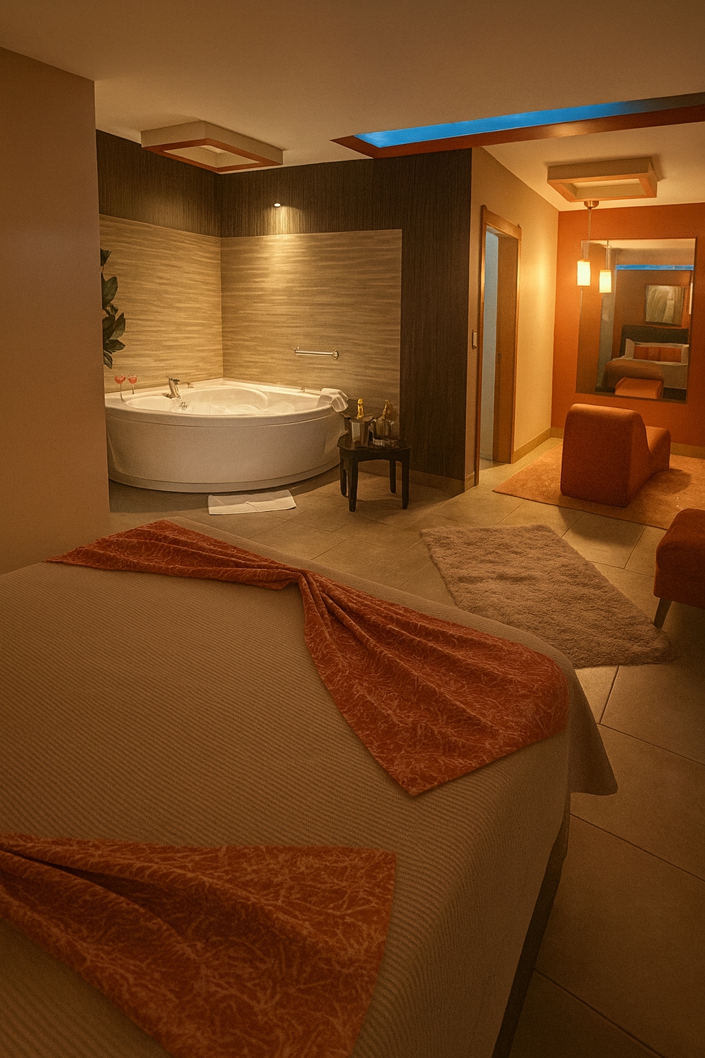 Una suite diseñada para parejas que buscan una noche diferente, combinando romance y sensualidad. Disfruta un jacuzzi privado, iluminación cálida y un ambiente íntimo perfecto para desconectarse. La habitación incluye camasutra, creando una experiencia especial para explorar, relajarse y compartir momentos únicos. Ideal para aniversarios, sorpresas o escapadas rápidas dentro de la ciudad.