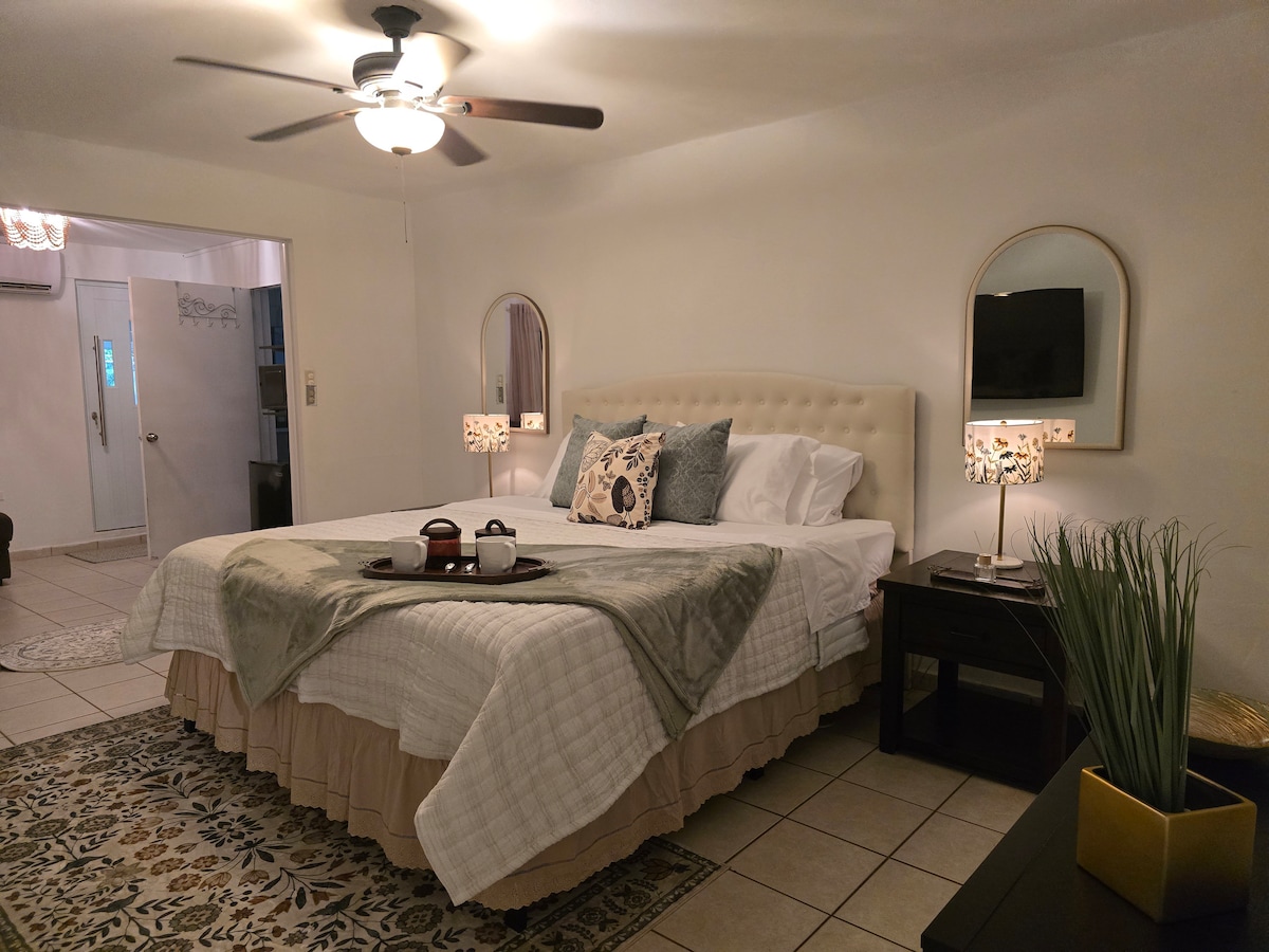 AGUADILLA VENTER! Avslappende og komfortabel opplevelse i denne sjarmerende studioleiligheten med privat bad, perfekt for de som verdsetter komfort, naturlig design og en utmerket beliggenhet. Perfekt for to. Stedet tilbyr en beroligende atmosfære, ideelt for romantiske utflukter, enslige reisende eller korte opphold med alle nødvendigheter for komfort. Beliggende i et sentralt område i Aguadilla, i nærheten av de beste strendene, restaurantene og lokale attraksjonene, og bare 20 minutter fra BQN-flyplassen.
