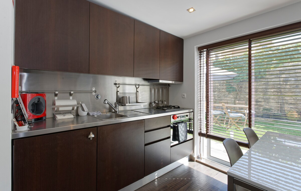 Bo i Espinho, en kystby kjent for sine strender og innbydende atmosfære. Denne moderne leiligheten med to soverom tilbyr balkong, felles basseng og treningsstudio i et rolig boligområde, bare 20 minutters gange fra sjøen. Inne kan du nyte en lys stue med TV, et fullt utstyrt kjøkken og to dobbeltrom med aircondition. Perfekt for par eller venner som ønsker å slappe av, utforske og få mest mulig ut av Espinho.