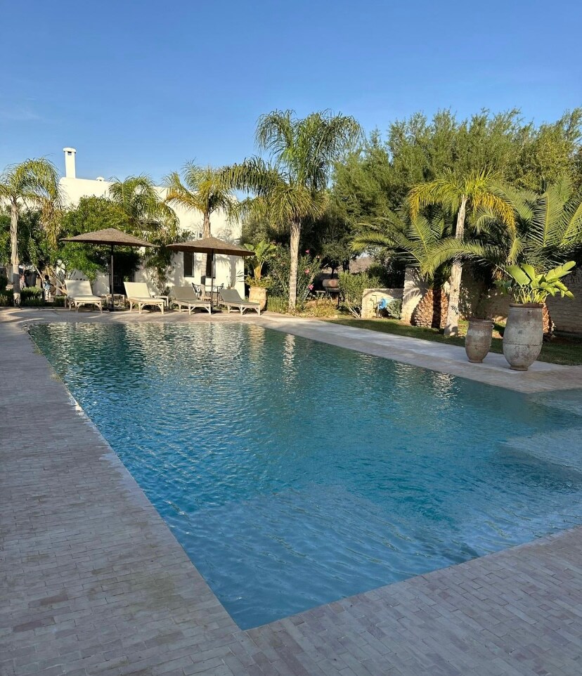 La VILLA AUX 90 OLIVIERS er en typisk marokkansk VILLA (300 KVM) : Hovedsoverom + privat bad Kjøkken, stue (40 kvm). 1. etasje : hovedsoverom + privat bad. To soverom bad stue Takterrasse 360view 1 kjeller m/ vaskemaskin Ute : Sommerkjøkken En hage med 90 oliventrær, en typisk marokkansk hamam, XXL svømmebasseng for å rømme og komme i kontakt med naturen. Perfekt for familier, stedet er omsorgsfullt av vår svært nære gartner. Kontakt meg for mer informasjon.